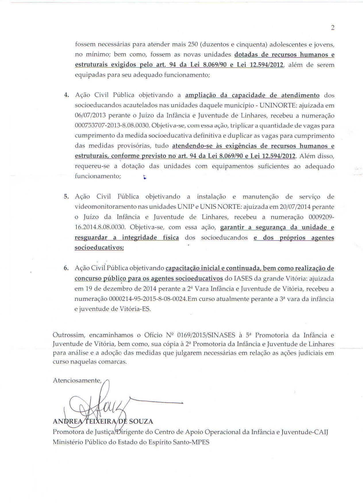 O Ministério Público Estadual respondeu a solicitação do SINASES dizendo que diversas ações judiciais foram abertas contra o IASES.